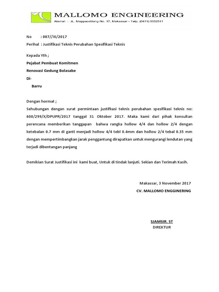 Contoh Surat Surat Justifikasi Tim Tekn Is Pdf
